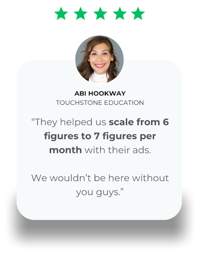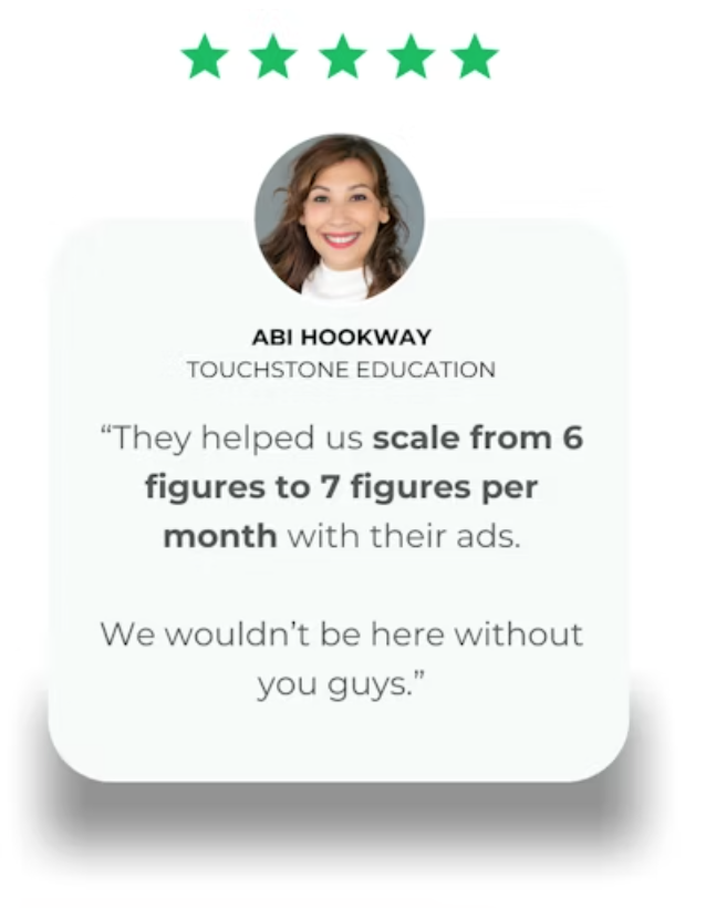 I had the pleasure of them working for our business for over seven years. They helped us scale from 6 figures to 7 figures a month with their ads and digital funnels using lead magnets to get people into our databases to get them onto our seminars.
